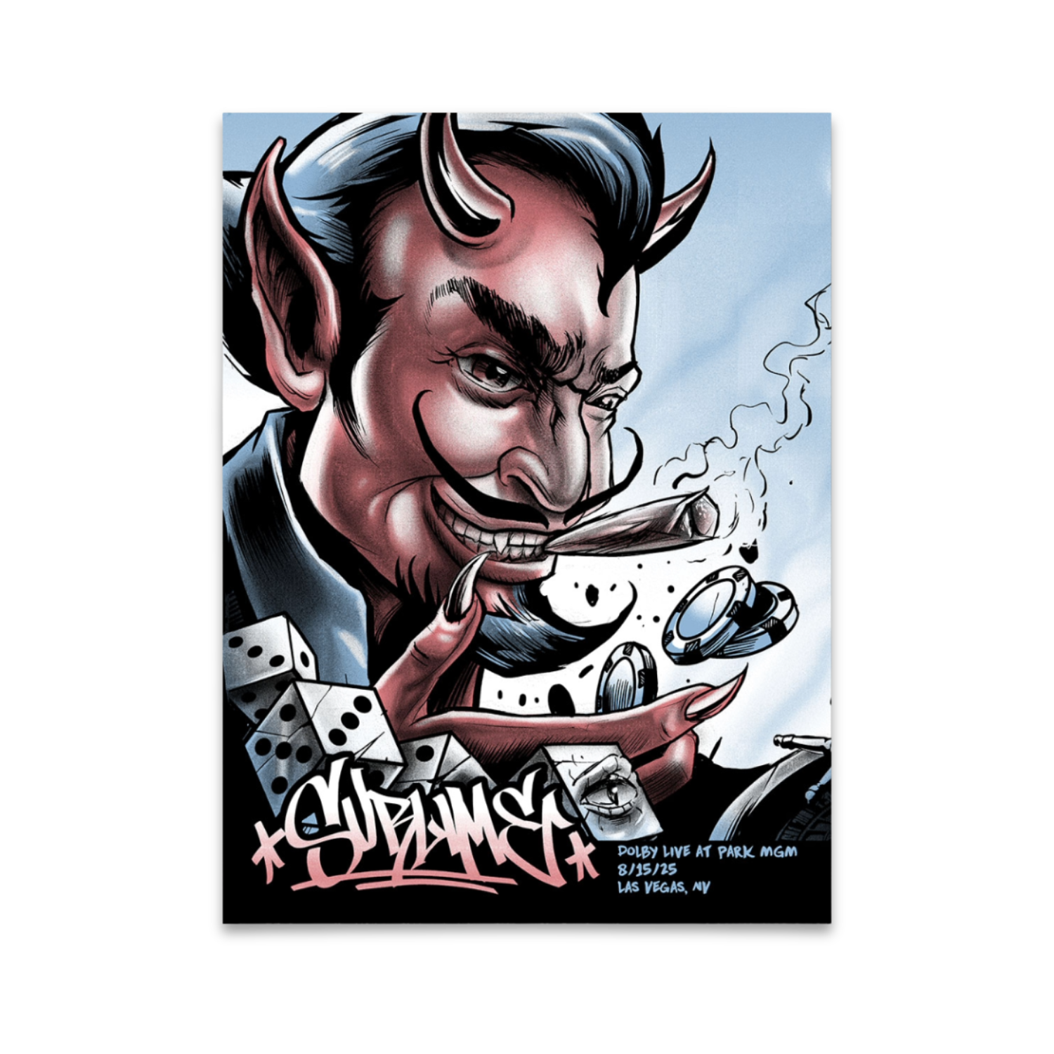 Inspired by Sublime’s classic 1995 flyer for their show in Vegas, this limited-edition event poster was created for Fear, Loathing & Sublime in Las Vegas, NV on August 15, 2025. Features original artwork by Maxx242.