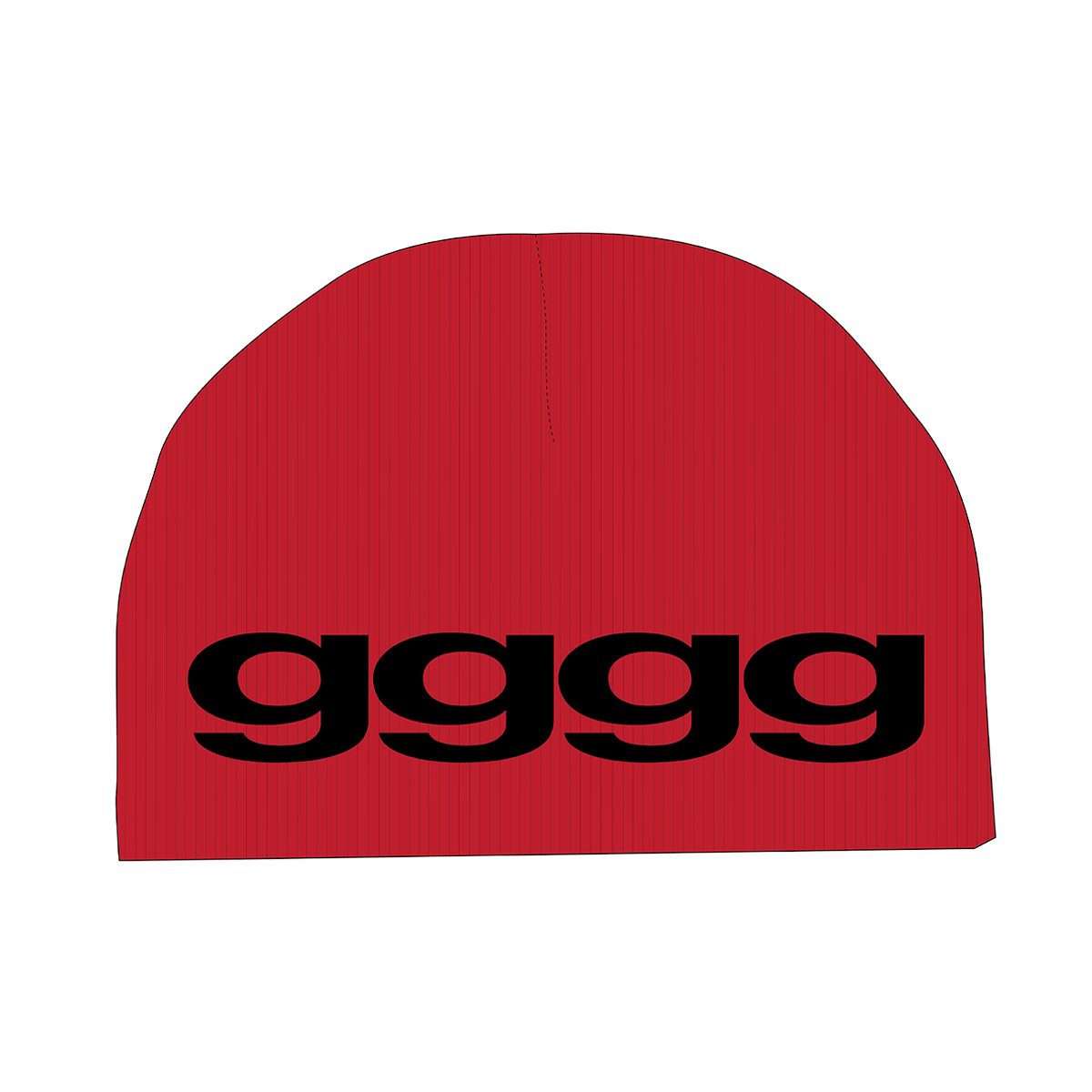 Backflips graphic on front, "gggg" on back printed on a red beanie.
