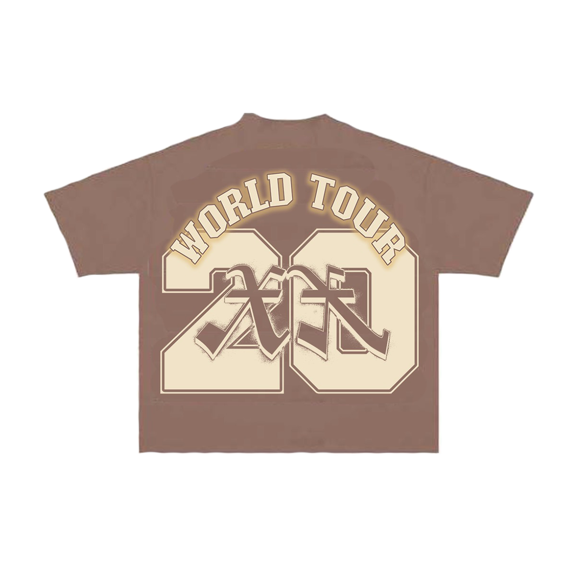 Brown boxy-fit tee featuring Chris Brown and Breezy Bowl XX designs on the front and back.