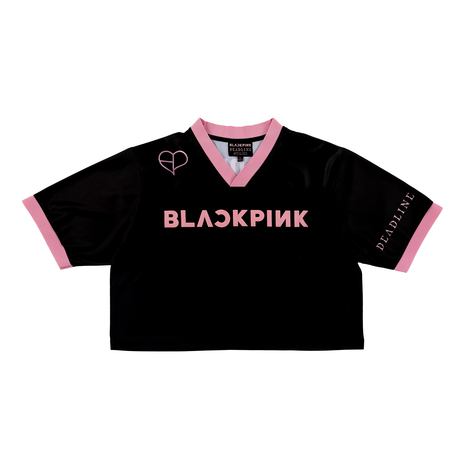 Custom cropped black mesh jersey with pink trim featuring BLACKPINK on the front and Toronto 16 on the back.