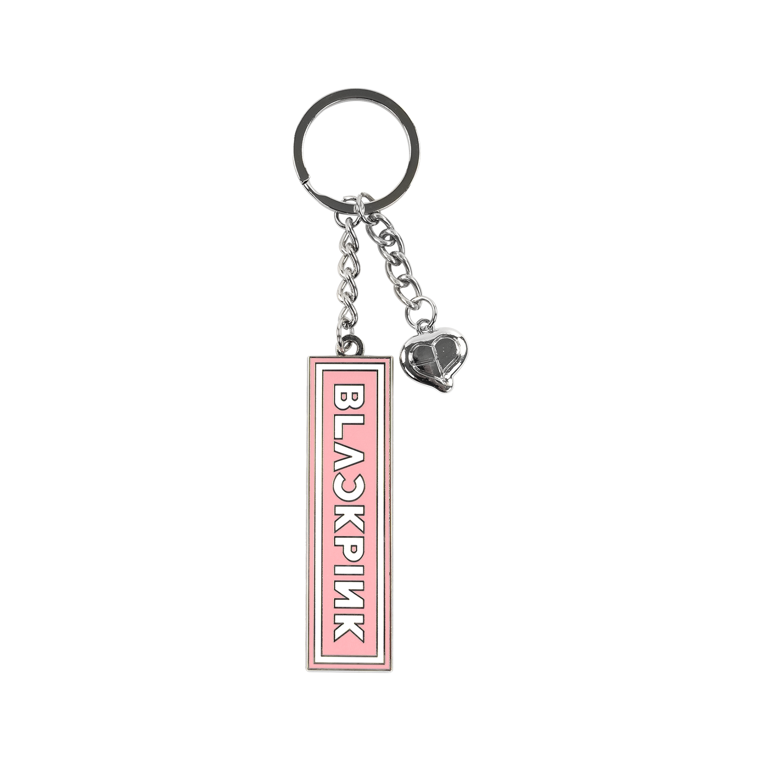 BLACKPINK metal logo keychain featuring a heart symbol charm.