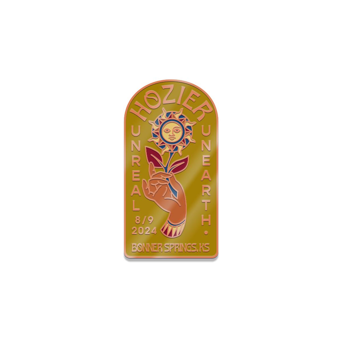 Bonner Springs August 9 rose gold plated show pin and backer card.