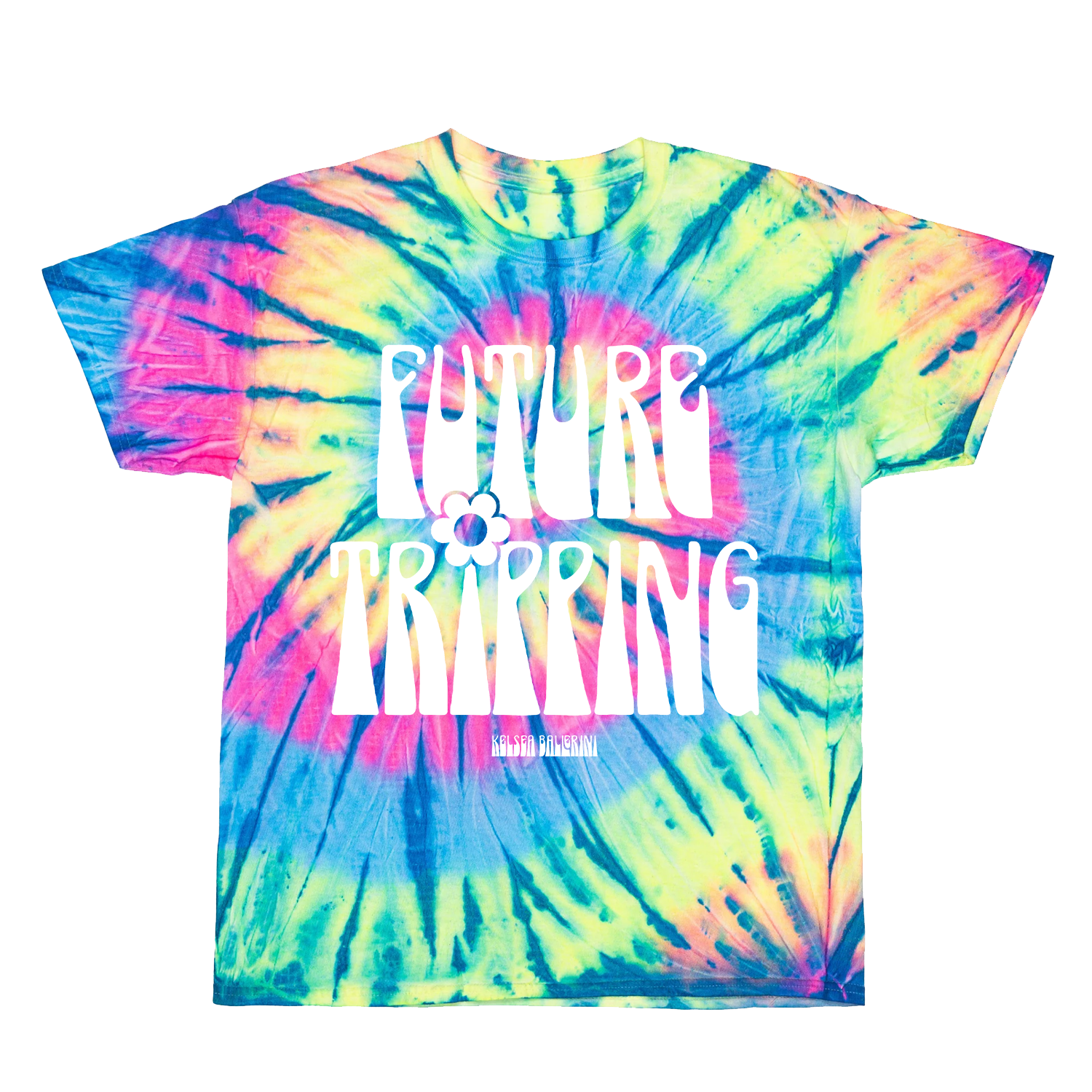 Future Tripping with Kelsea Ballerini printed on front of a youth tie dye tee.