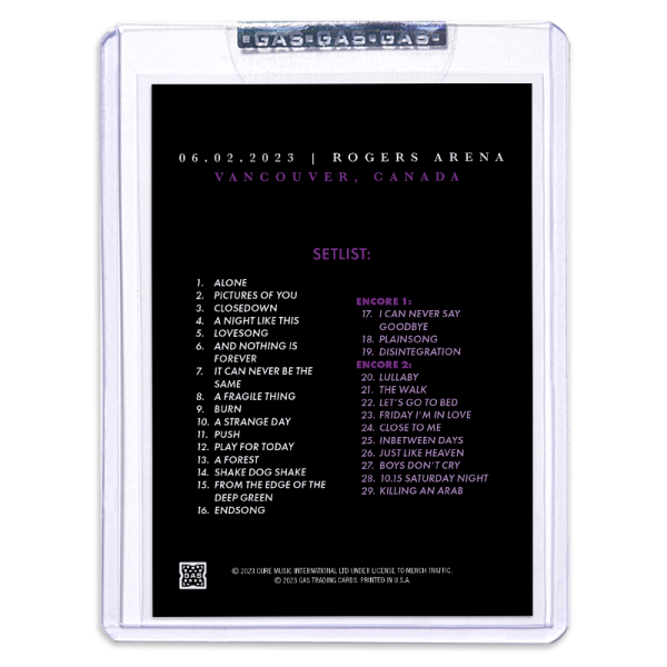GAS The Cure June 2, 2023, Vancouver, BC, Canada 2nd Edition Trading Card Illustrated by Simon Marchner