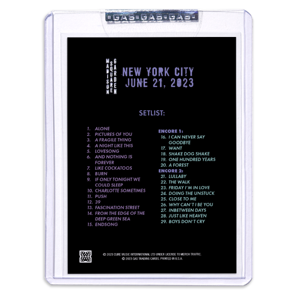 GAS is proud to present the official The Cure Shows Of A Lost World North America Tour 2023 Trading Cards, featuring the poster artwork and setlist from each show.
