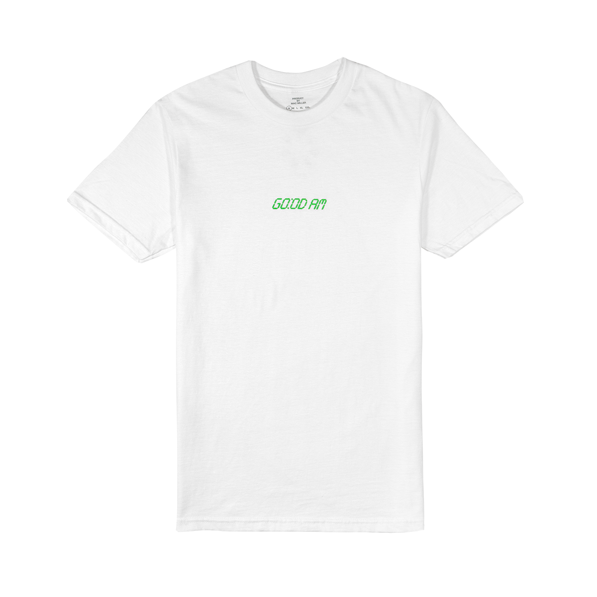 GO:OD AM Logo design printed on the front and back of a white unisex short sleeve tee.