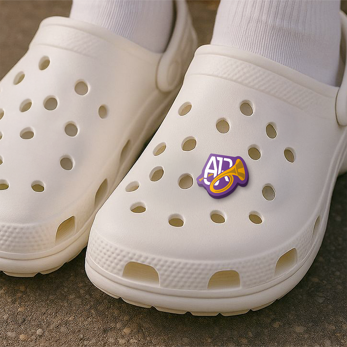 Horn shaped snap-in shoe charm for foam clogs or similar footwear.