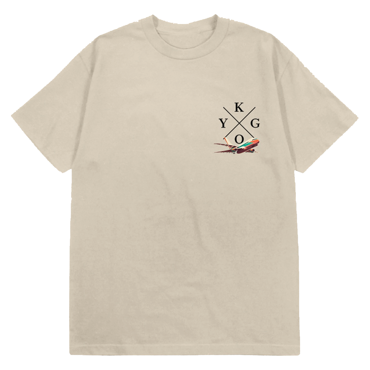 A natural unisex tee with kygo logo design printed on the front and Ibiza design and show dates printed on the back.