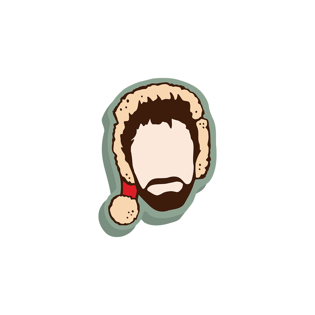 Jack head shaped snap-in shoe charm for foam clogs or similar footwear.
