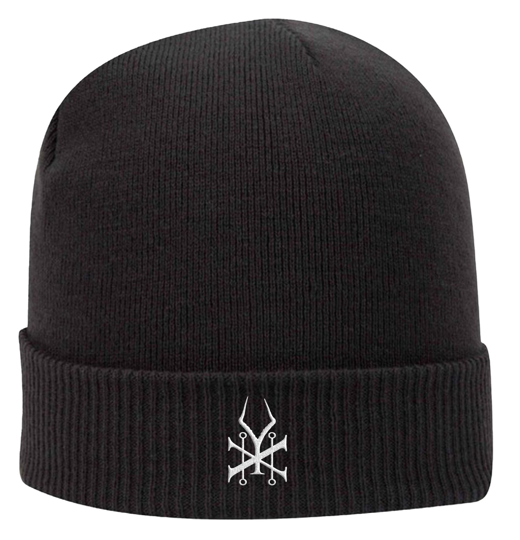 King Animal logo embroidered on the front a cuffed ribbed black beanie.