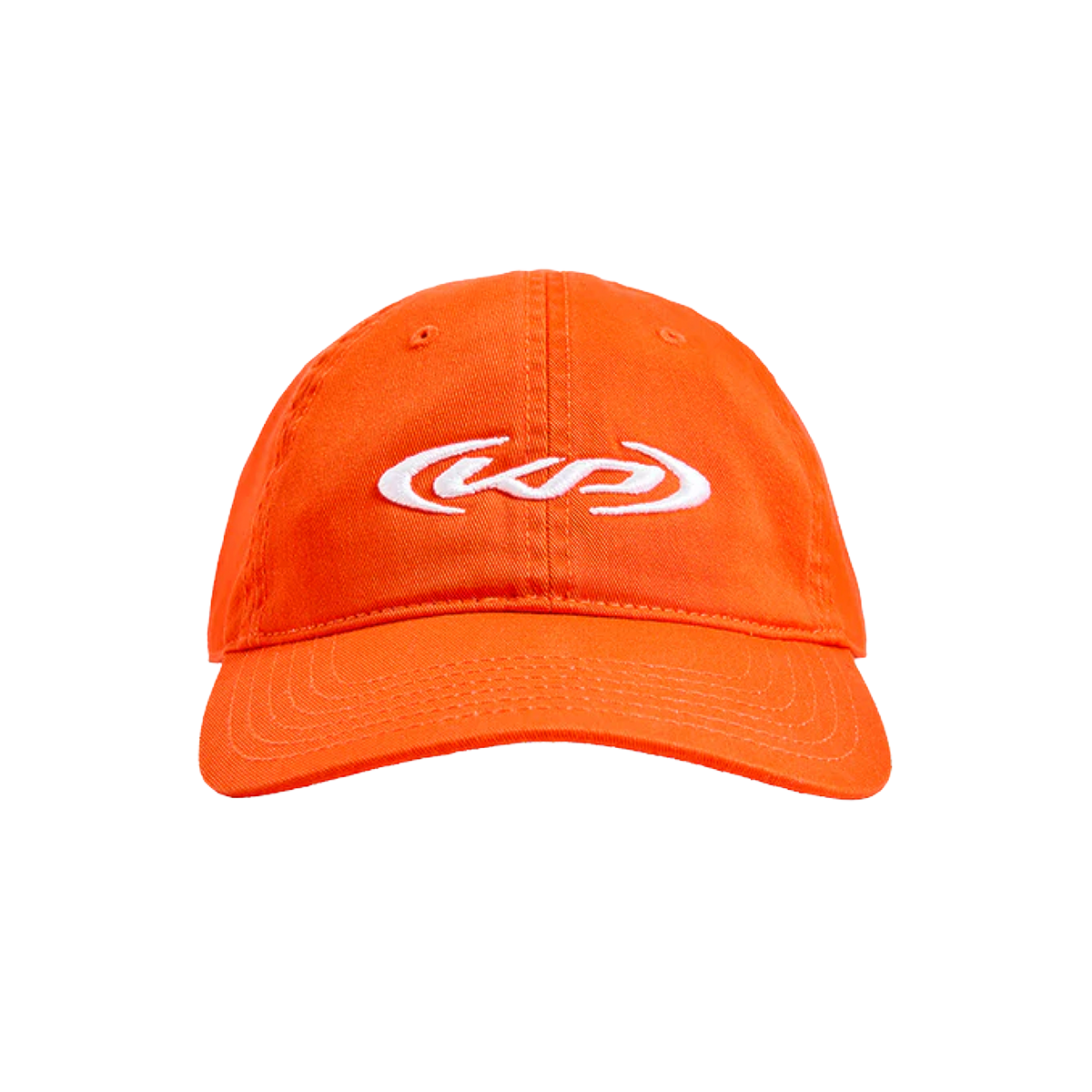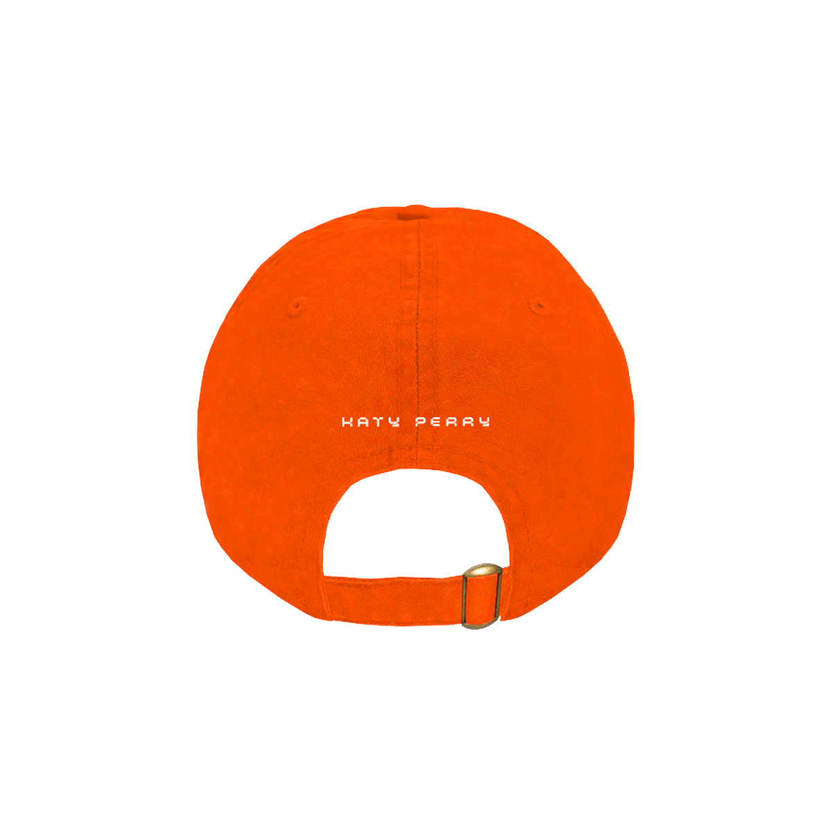 Classic fitting dad hat in orange featuring a (KP) logo embroidered on the front and Katy Perry embroidered on the back.