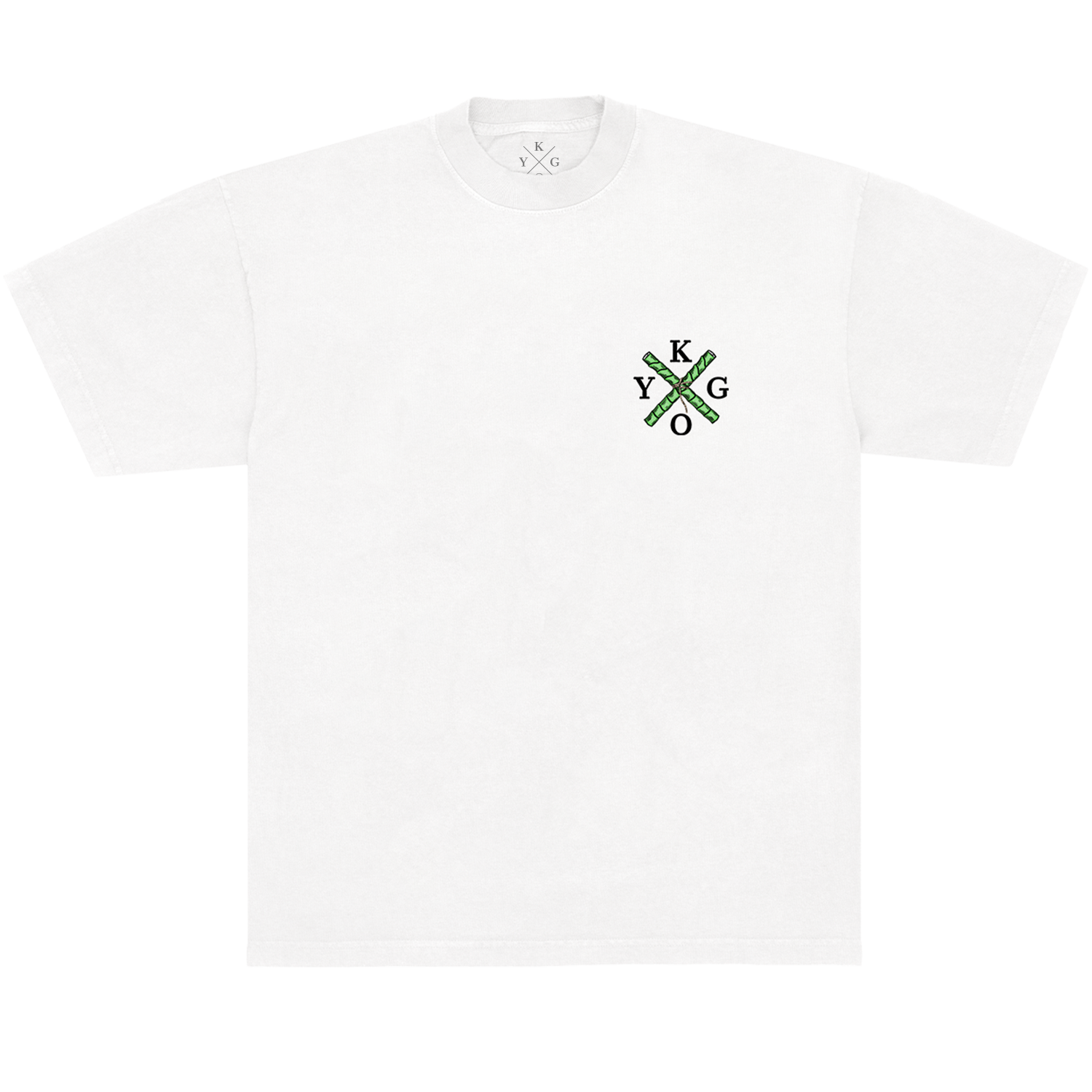 A unisex white tee with Kygo logo design printed on the front chest and panda graphic on the back.