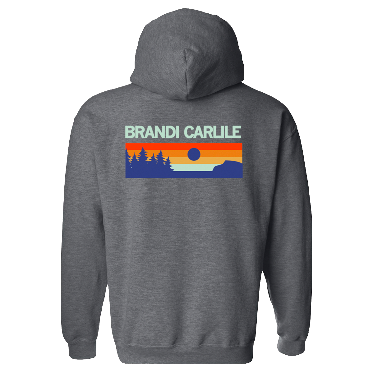 Mountain sun graphic featured on the front and back of a unisex grey hoodie.