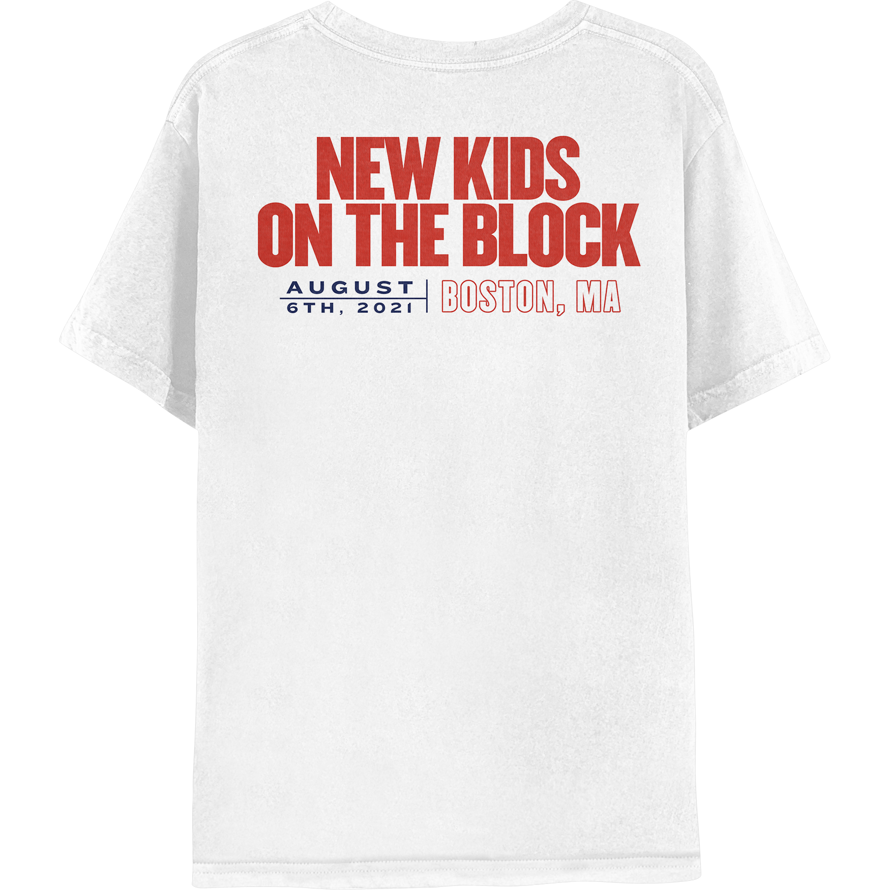 White 100% cotton short sleeve tee featuring a photo on the front and Boston event details on the back.