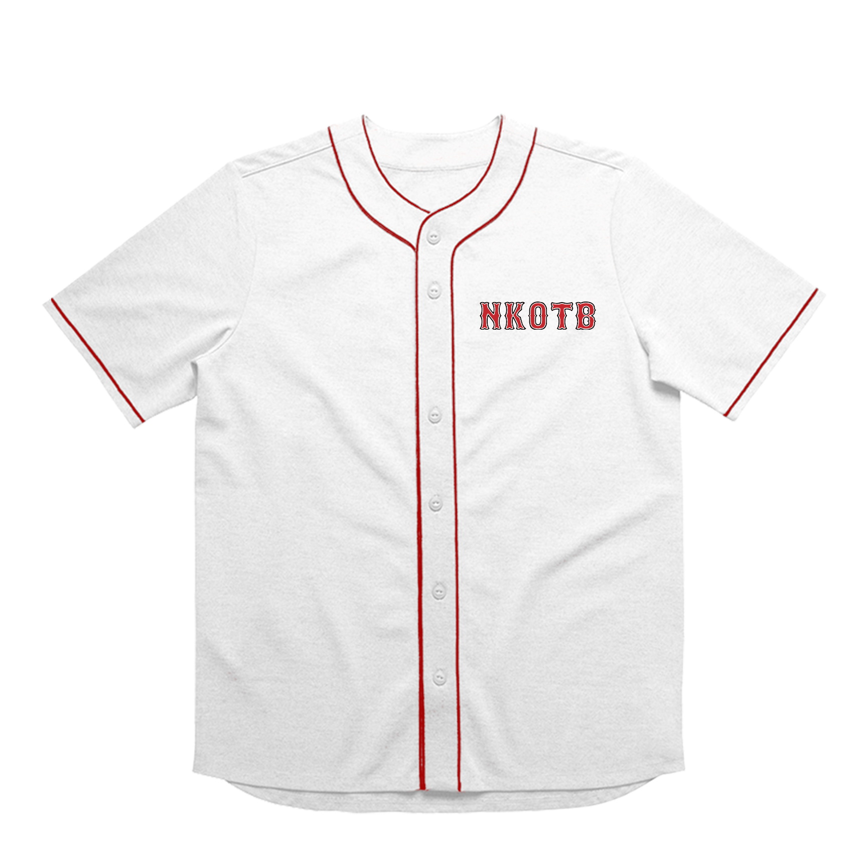 White Jersey with Red Piping featuring NKOTB on the front and Boston 2021 on the back.