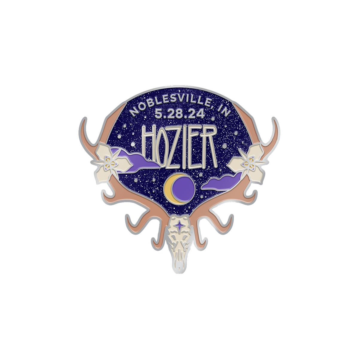 Noblesville May 28th silver plated with navy glitter show pin and backer card.