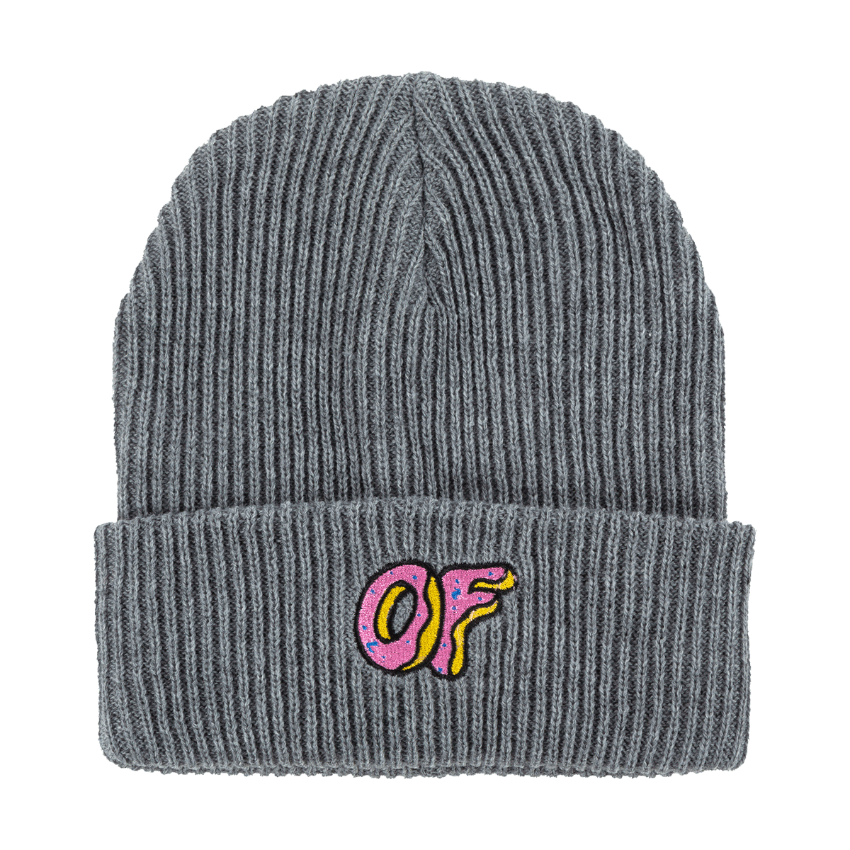 Acrylic knit cuff beanie with OF donut logo embroidered at the front.