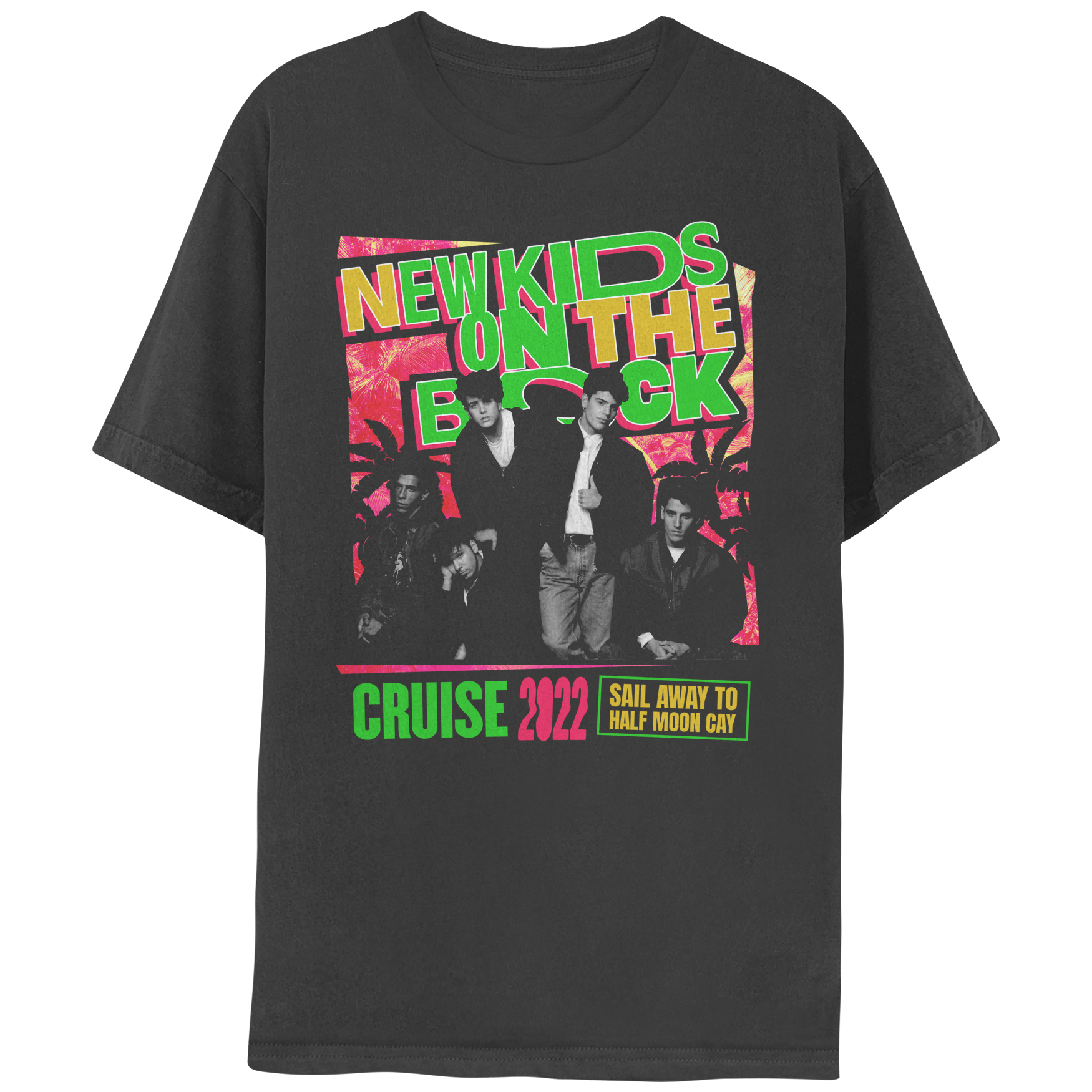 Black 100% cotton short sleeve tee with a vintage photo of NKOTB