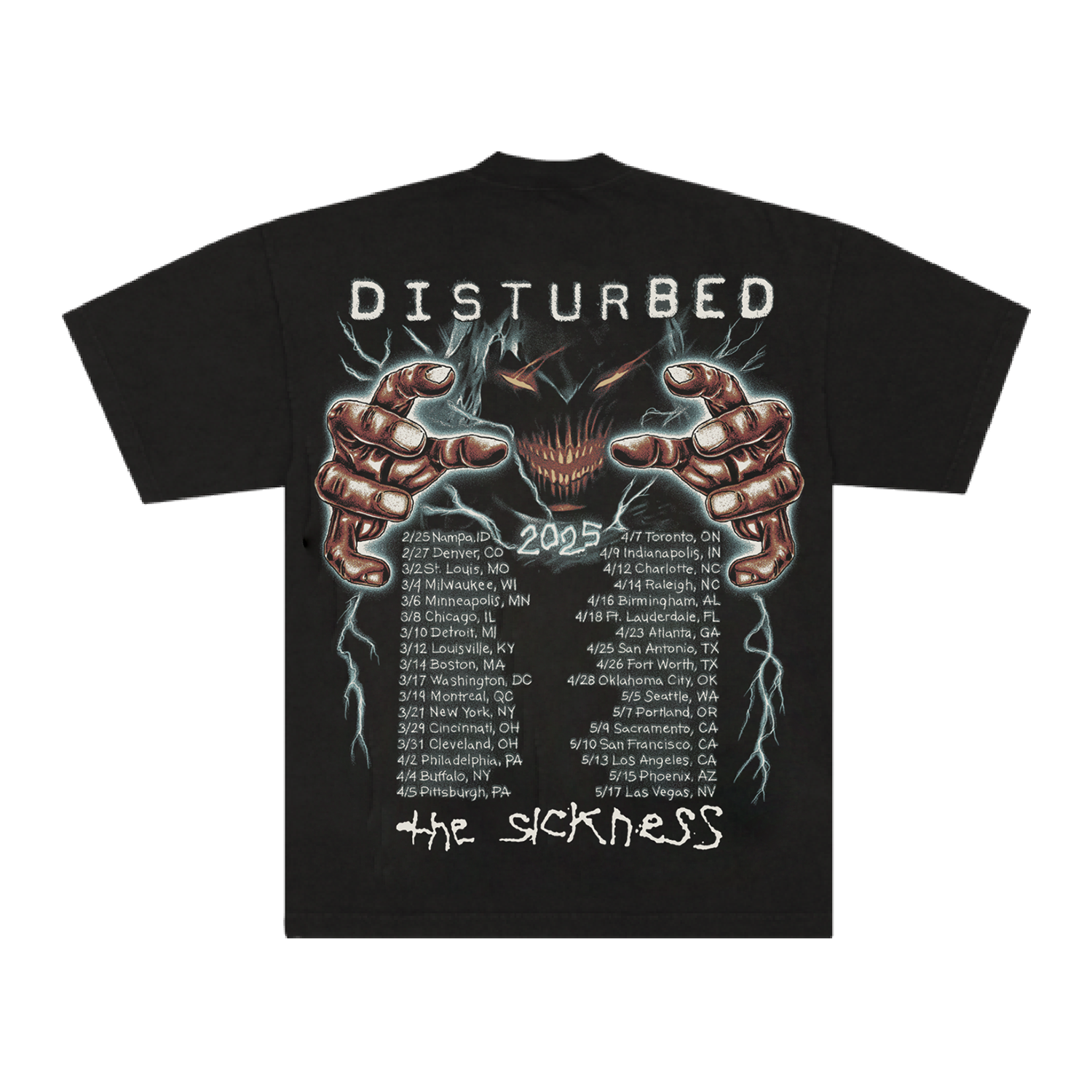 The Guy with The Sickness logo on front, tour dates and cities on back printed on a black tee.