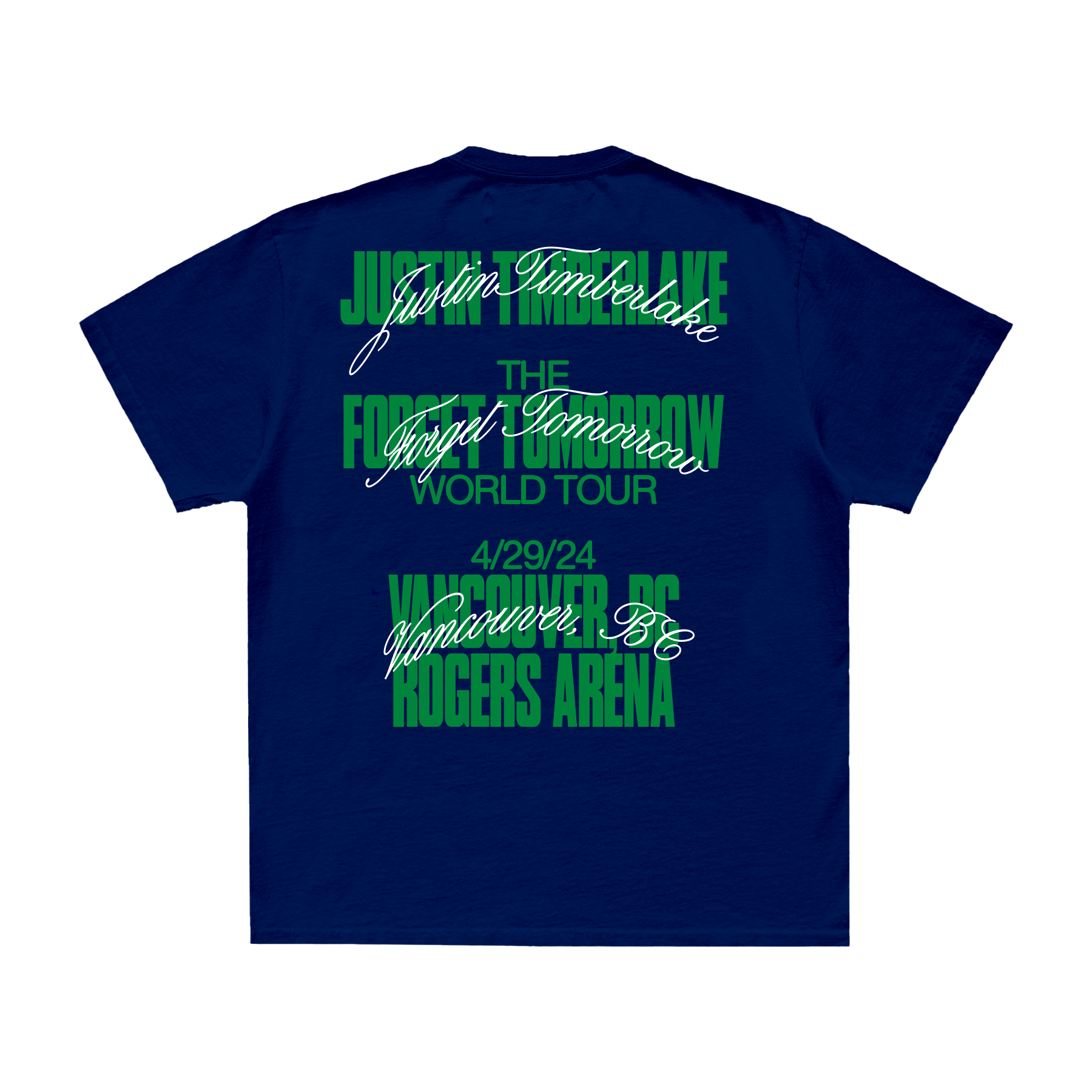 A blue unisex tee from the 4/29 Vancouver show with designs printed on the front and back.