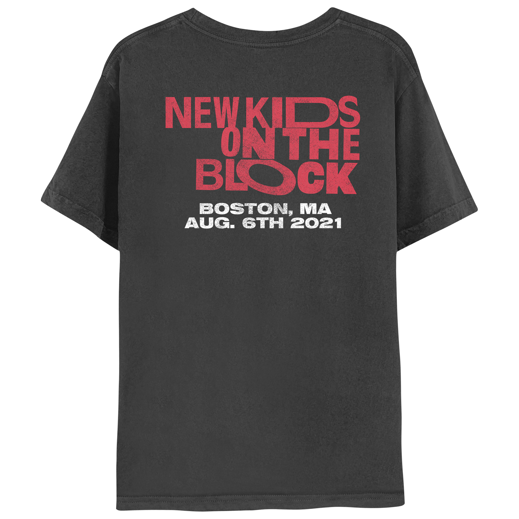 Back 100% cotton short sleeve tee featuring vintage NKOTB photos on the front and NKOTB classic logo with Boston event details on the back.